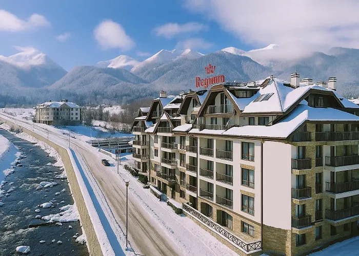 5-звездочный стильный Regnum Bansko Ski Hotel & Spa расположен в в 25 минутах ходьбы от Къщи музей Неофит Рилски и выходит окнами на горы. В отеле есть аквапарк, веранда для загара и терраса для загара.